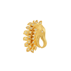 Inspired by Sonia’s impressions of Greek mythology from her time spent on Patmos, the Griffin brooch features an intricate griffin motif — half eagle, half lion — in profile. Cast in a rich gold overlay with Swarovski stones, the brooch adds an enchanting touch to any outfit.